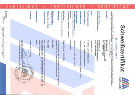 einigen Jahre ist die Fritz Boss AG EN1090 Zertifiziert und ist somit der perfekte Partner für tragende Stahl- und Aluminiumbauteile.